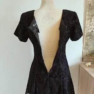 Nite Kraze 80's Vintage Black Floral Velvet Whimsigoth Lace Sparkly Dress Sz. 6
