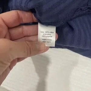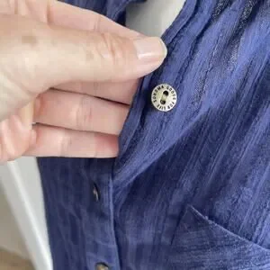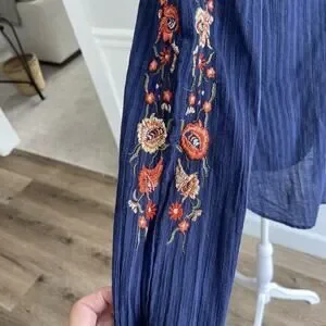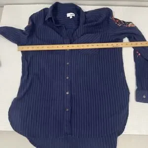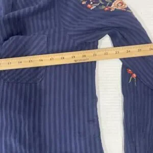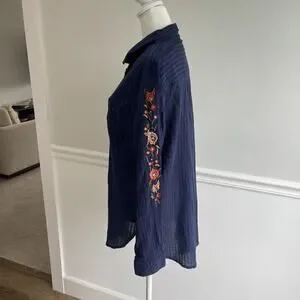 Sonoma Women L Embroidered Button Up Shirt Collared Cotton Gauzy Top Blue Tunic