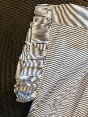 Trovata White and Blue Pinstripe Ruffle Sleeve Shirt