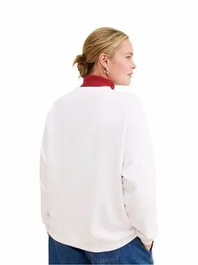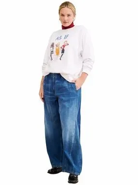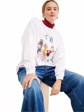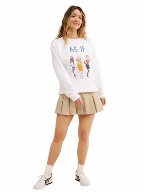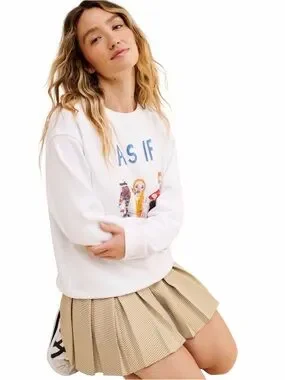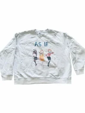 Soft white sweatshirt with a playful 'AS IF' graphic and illustrated trio on the front. Comfortable crewneck silhouette for everyday wear. Easy-to-style layering piece that adds personality to casual outfits.