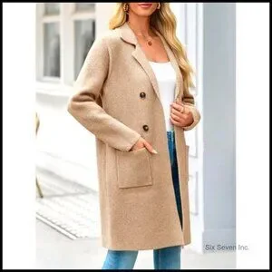 Chunky Knit Cardigan Coatigan Open Front Lapel Collar Casual Elegant Sweater