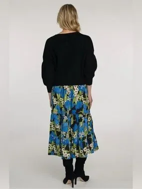 Elizabeth James The Label Surrey Blue Green Midi Skirt in Night Bloom.