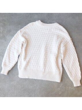 From Aerie-- this is an oversized pullover sweater, with a bubble / cloud knit. Very plush and super soft! Ribbed edges with visible, exterior seams. 55% cotton 27% acrylic 13% polyester 5% nylon. Size Small. Excellent condition, with no notable flaws.
