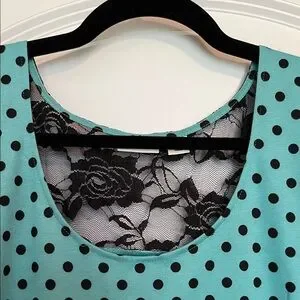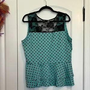 Cato Teal Polka Dot Peplum Top XL Lace Back Ruffle Hem Sleeveless Blouse