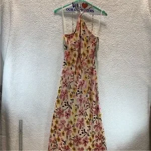 STAUD Pink Yellow Floral Backless Halter Midi Dress