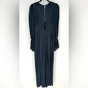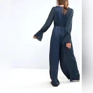 Free People not your baby satin navy Blue feminine bohemian Jumpsuit