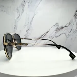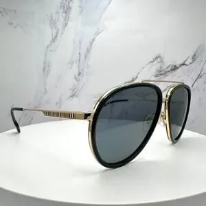 New Burberry Sunglasses Polarized Gold Black Check Arms Aviator Pilot Metal