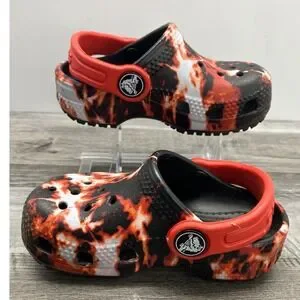 Crocs Toddler C5 Classic Clog Fire Tie Dye Red Black Flame Slip On Shoes