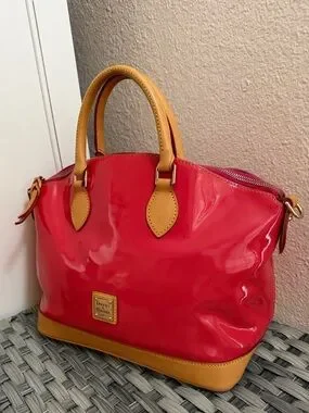 Dooney & Bourke Patent Leather Top Handle Satchel in Red Orange - Leather trim