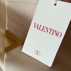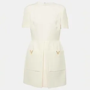 Valentino Garavani Cream Short Sleeve Mini Dress with Gold V Accents