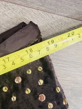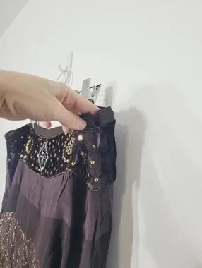 Le Chateau Vintage Brown Mix Media Lace Crashed Velvet Embroidered Gold Gems Bohemian Zipper Side Skirt Size XLarge