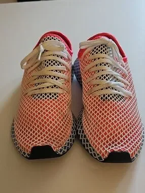 Men's Adidas Deerupt Coral and White Mesh Athletic Shoes SIZE 10