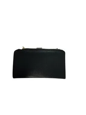 Nanette Lepore black pebbled leather wallet with subtle polka dot trim. Stylish gold-tone hardware and secure snap closure. Multiple compartments for cards and cash. Sleek, versatile design for everyday use.