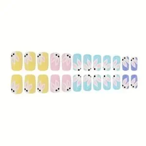 Adorable 24-pc set of medium square reusable press-on nails featuring cute little bunnies! These are perfect for Spring, but how cute would they be on Easter!?