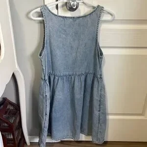 Stylish light blue mini dress. Sleeveless design. Perfect for casual outings.