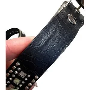 Western Rhinestone Crystal Belt Black Genuine Leather Croc Embossed Studded SM