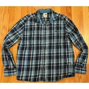 The North Face Shirt Men's Medium Blue Flannel Plaid Long Sleeve Button Front
