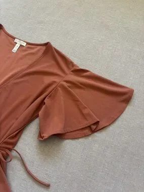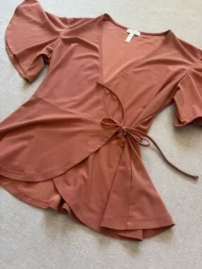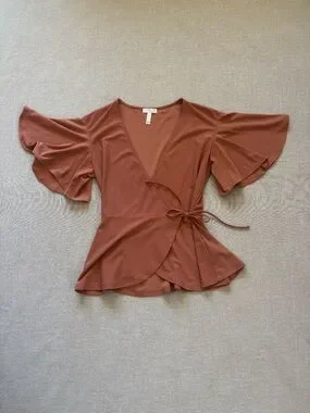 Leith mauve ruffle wrap top.