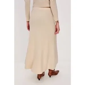 quiet luxury minimalist chic old money aesthetic winter white ivory cream neutral capsule wardrobe cashmere blend merino wool designer contemporary sophisticated elegant modest midi skirt knit skirt a-line silhouette pull on comfort luxe loungewear cozy chic holiday outfit bridal shower rehearsal dinner winter aesthetic timeless classic high end soft girl light academia
