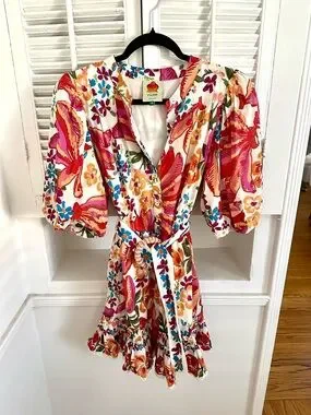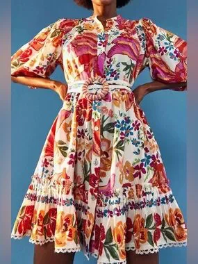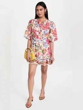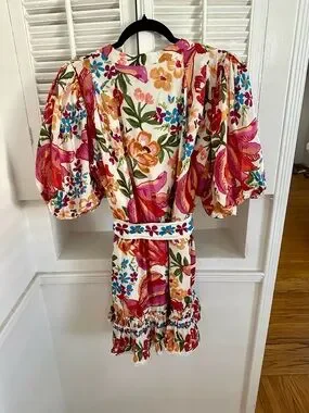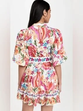 FARM Rio White Spring Bananas Belted Mini Dress