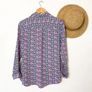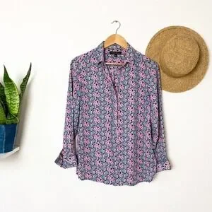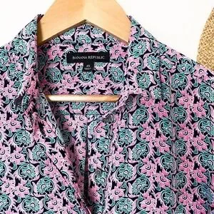 Banana Republic Pink Green Floral Button Up Shirt XS