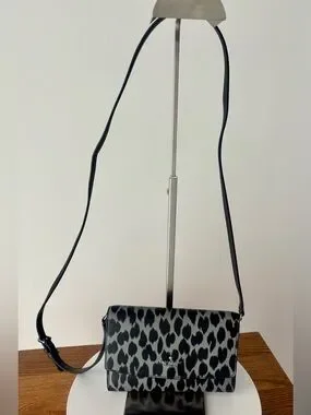 KATE SPADE Black and Gray Leopard-Print Crossbody Bag: detachable strap