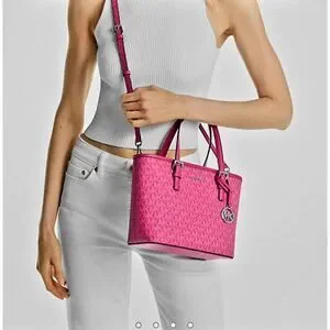 MICHAEL KORS OUTLET JET SET EXTRA SMALL LOGO ZIP TOP TOTE BAG