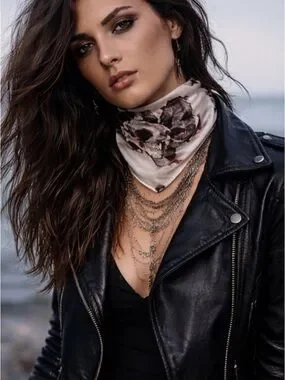 Alexander McQueen Cream Pocket Square with Black Skull & Rose Motif excellent