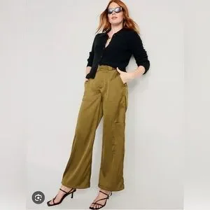 OLD NAVY HIGH WAISTED SATIN JOGGER CARGO PANTS Utility Green NWT Sz 3X