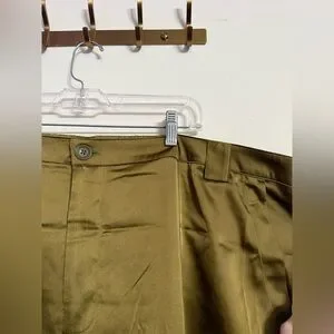 The Old Navy High Waisted Satin Jogger Cargo Pants in Utility Green are plus-size women's pants featuring a solid pattern and a button closure. Made from a polyester blend satin fabric, these lightweight pants have a flat front design and a high rise waist. With cargo pockets and a stylish cargo style, these pants are perfect for the summer, fall, and spring seasons. Designed for comfort and style, these pants are machine washable and come in size 3X.