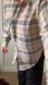 Casual beige plaid button-up shirt. Soft flannel-like fabric with chest pocket. Classic collar and long sleeves. Neutral tones for easy layering.