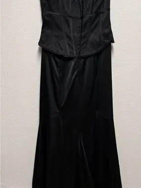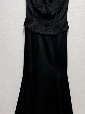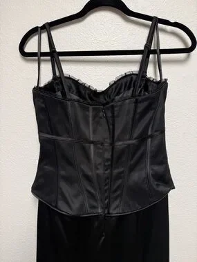 White House Black Market Black Satin Corset Maxi Dress Lace Trim Size 6