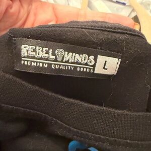 Black tee featuring a vibrant graphic design with blue, red, and green accents. Perfect for casual wear. Has the words rich mindset on it.