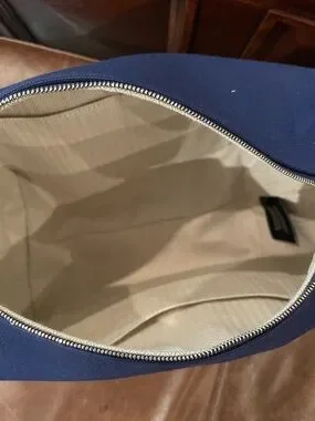 Features Hermès’ signature durable cotton canvas with the embroidered “H,” top handle, and zip closure with snap flap. Interior includes multiple flat pockets for easy organization, making it perfect as a luxury toiletry case, travel pouch, or casual carry.