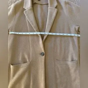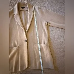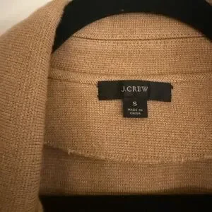 Classic single-button blazer from J. Crew. Soft camel wool-blend fabric. Notched lapel and front patch pockets. Relaxed tailored fit. Versatile neutral for layering.