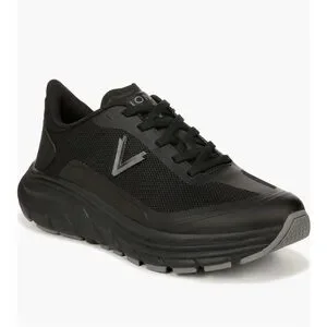 Experience the perfect blend of style and comfort with Vionic's athletic shoes, featuring a sleek black and gray design. These shoes boast a chunky sole for added support and a rugged outsole for excellent traction, making them ideal for both casual outings and athletic activities.
