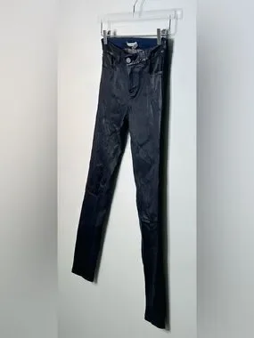 New with Tags Alice + Olivia Navy Blue Lambskin Leather Skinny Pants Jeans.