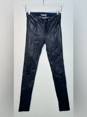Alice + Olivia Navy Blue Lambskin Leather Skinny Pants Jeans NWT
