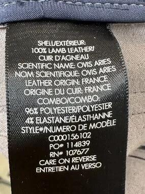 One of the most stylish jean silhouettes is crafted in a butter soft, navy blue lambskin leather (making it all the more covetable). Banded waistband with belt loops, single button closure and zip fly. Five pocket styling. Skinny leg that tapers at the ankle.