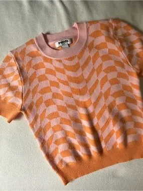 RSQ Pink & Orange Wavy Checker Knit Tee