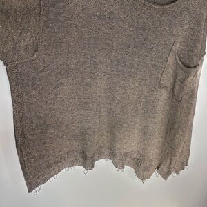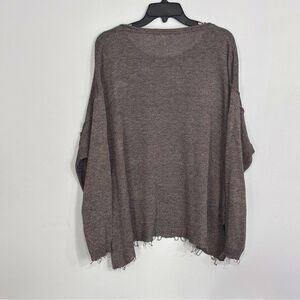easel Brown Scoop Neck Distressed Hem Sweater