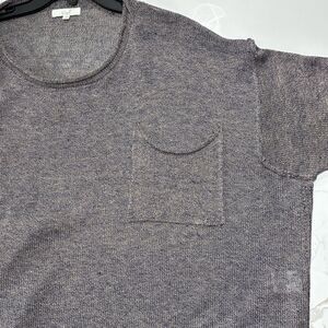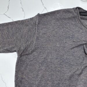 Soft knit easel sweater with a relaxed scoop neckline. Boxy, oversized fit with dropped shoulders. Distressed raw hem and cuffs for a lived-in look. Lightweight and easy to layer.