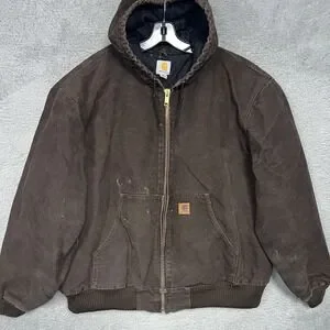 VTG Carhartt J130 Sandstone Active Jacket 2XL XXL Brown Quilted Lining Distress
