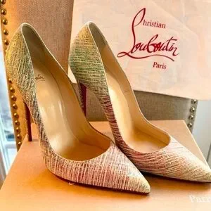 Darling, these aren’t just heels—they’re a spell. Christian Louboutin So Kate 120 in that mythical Unicorn suede: soft, velvety rainbow stripes dancing across white like a secret only you know. Pointed toe sharp enough to cut through small talk, 120mm stiletto that lifts you into goddess territory, and that signature red sole flashing like a dare.