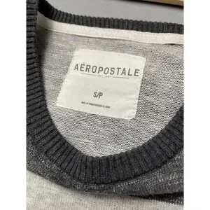 This stylish Aeropostale sweater is perfect for casual wear. Featuring a classic gray and light gray striped pattern, a comfortable crewneck, and long sleeves. Made from soft 100% Cotton, it's a versatile addition to any wardrobe.