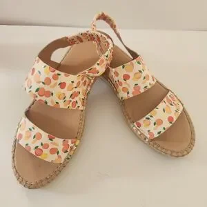 Cole Haan Pinch Maine citrus orange fruit print strappy espadrille sandals in size 8. Gently pre-owned.