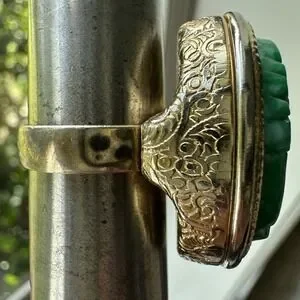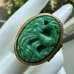 Vintage 1970s Avon Perfume Glacé Adjust Locket Ring Bird of Paradise Faux Jade