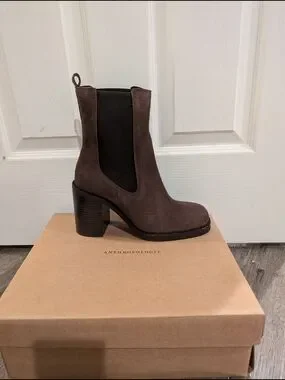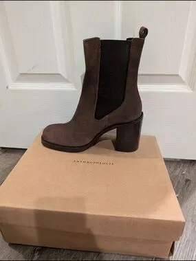 Anthropologie Brown Suede Chelsea Block Heel Booties