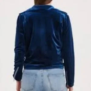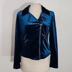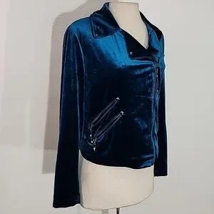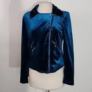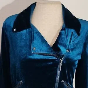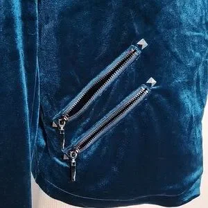 Badgley Mischka Jacket Velvet Chic Moto Turquoise Size S