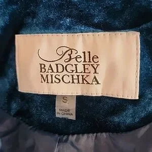 Belle Badgley Mischka Jacket Velvet Chic Moto Turquoise Size S Small
